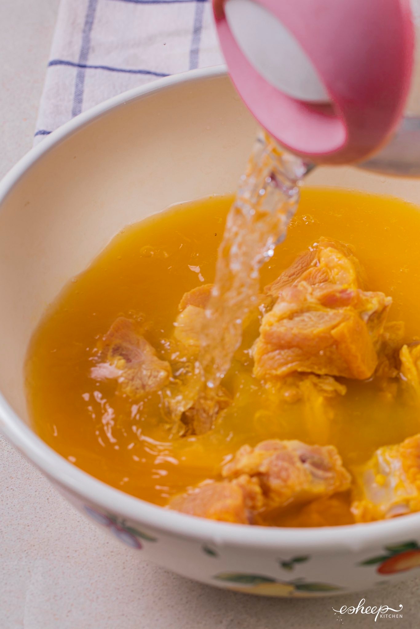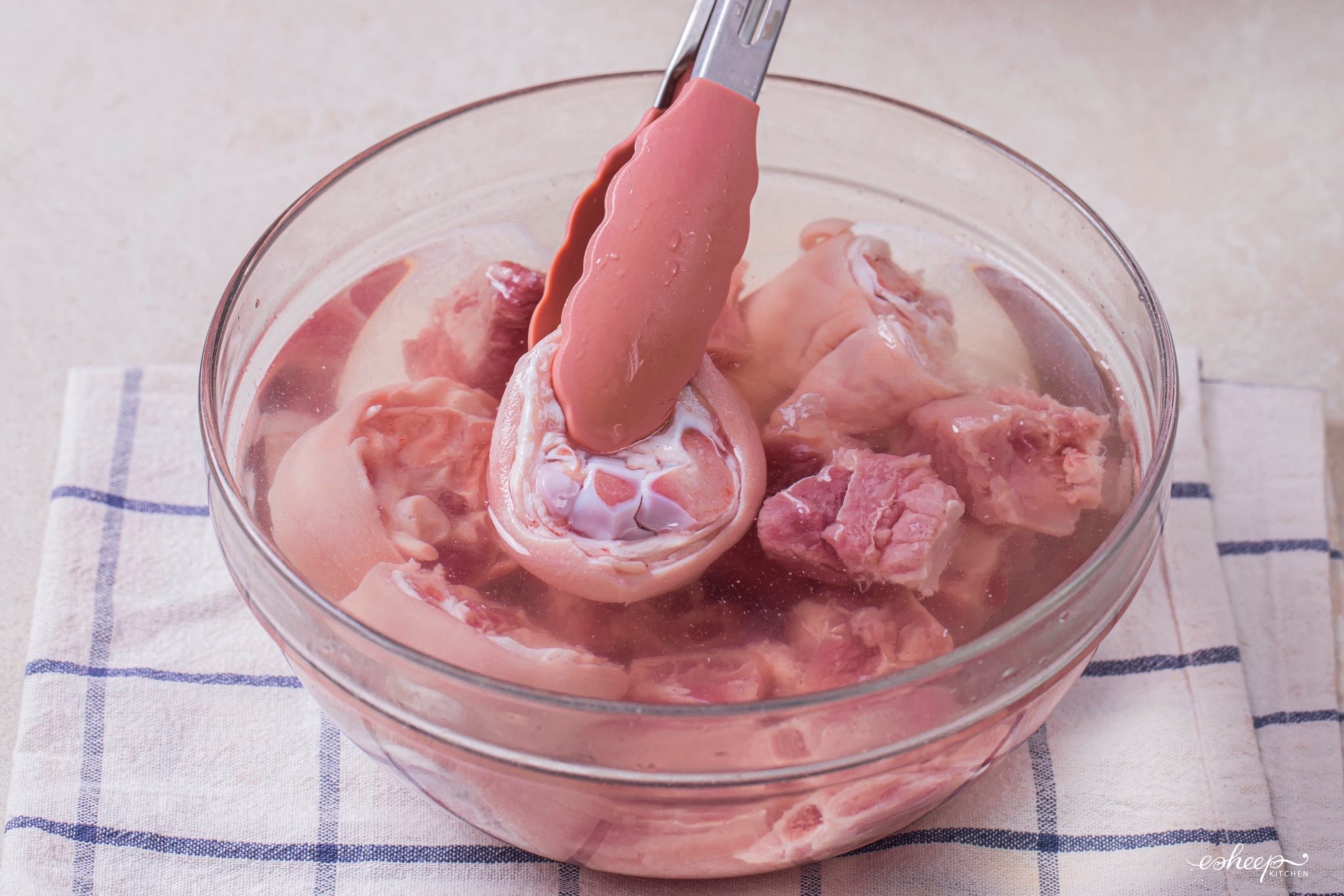 Sườn thăn, móng giò ngâm nước lạnh trong 30-45 phút.