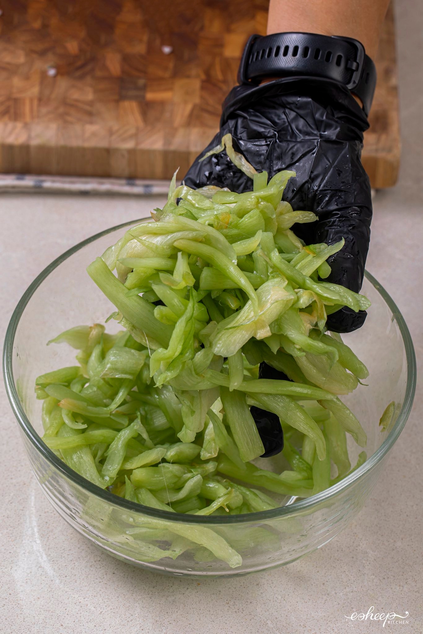 – 1 bó dọc mùng + 2 Tbsp muối hạt