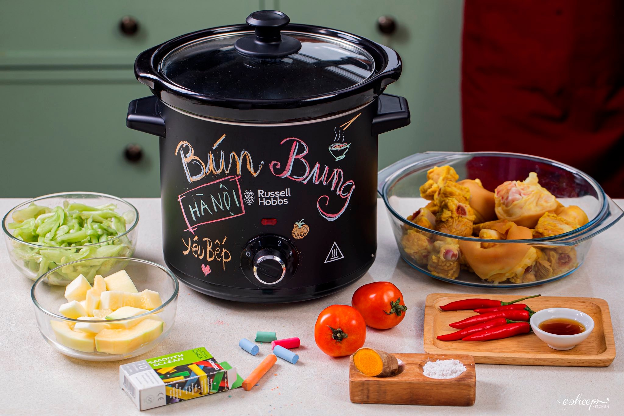 Bên cạnh bún bung Hà Nội thì các bạn hoàn toàn có thể dùng nồi nấu chậm Russell Hobb để nấu các món kho, om, hầm nhừ, hoặc bún bò, phở cũng rất ngon, tiện lợi. Đặc biệt, các món nấu nhiều nước, nguyên liệu mềm nhừ như nấu chè, nấu cháo chậm thì không phải bàn luôn, chỉ cần cho nguyên liệu vào nồi là xong, chẳng phải canh nhiệt hay đảo khuấy nhiều.Những kĩ thuật nấu truyền thống tưởng như mai một, hóa ra vẫn hiện diện trong cuộc sống, dưới một hình thức khác. Mình tin là với sự hiện đại của các loại đồ bếp, thì việc giữ gìn hương vị ẩm thực truyền thống không còn khó khăn, ngược lại còn giúp chúng ta tìm lại hương vị xưa cũ, với cách nấu giản lược, thuận tiên hơn.