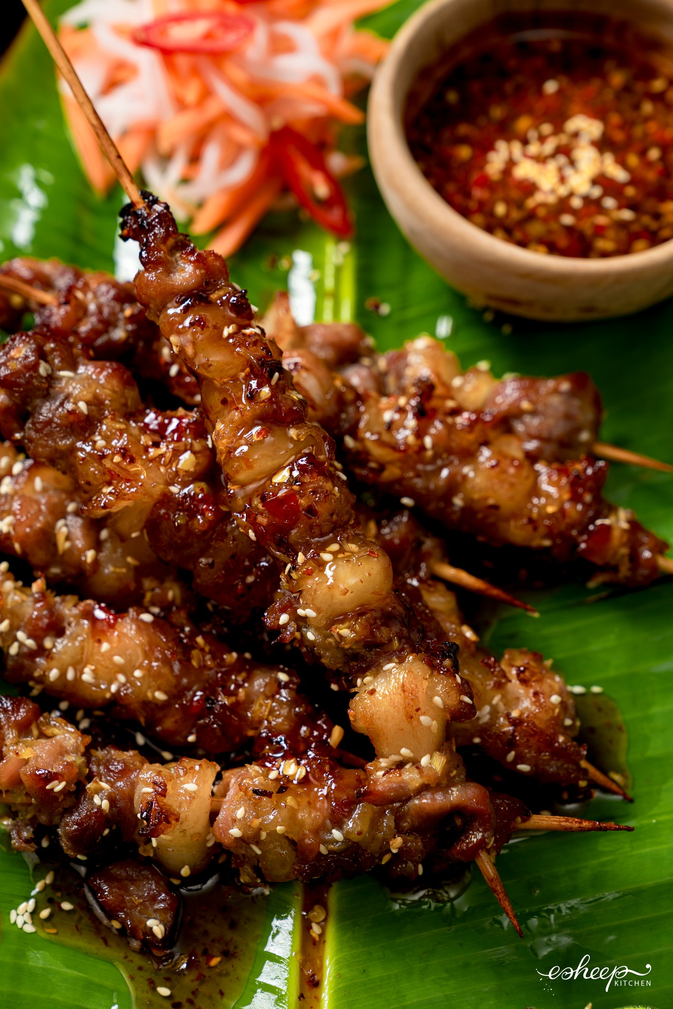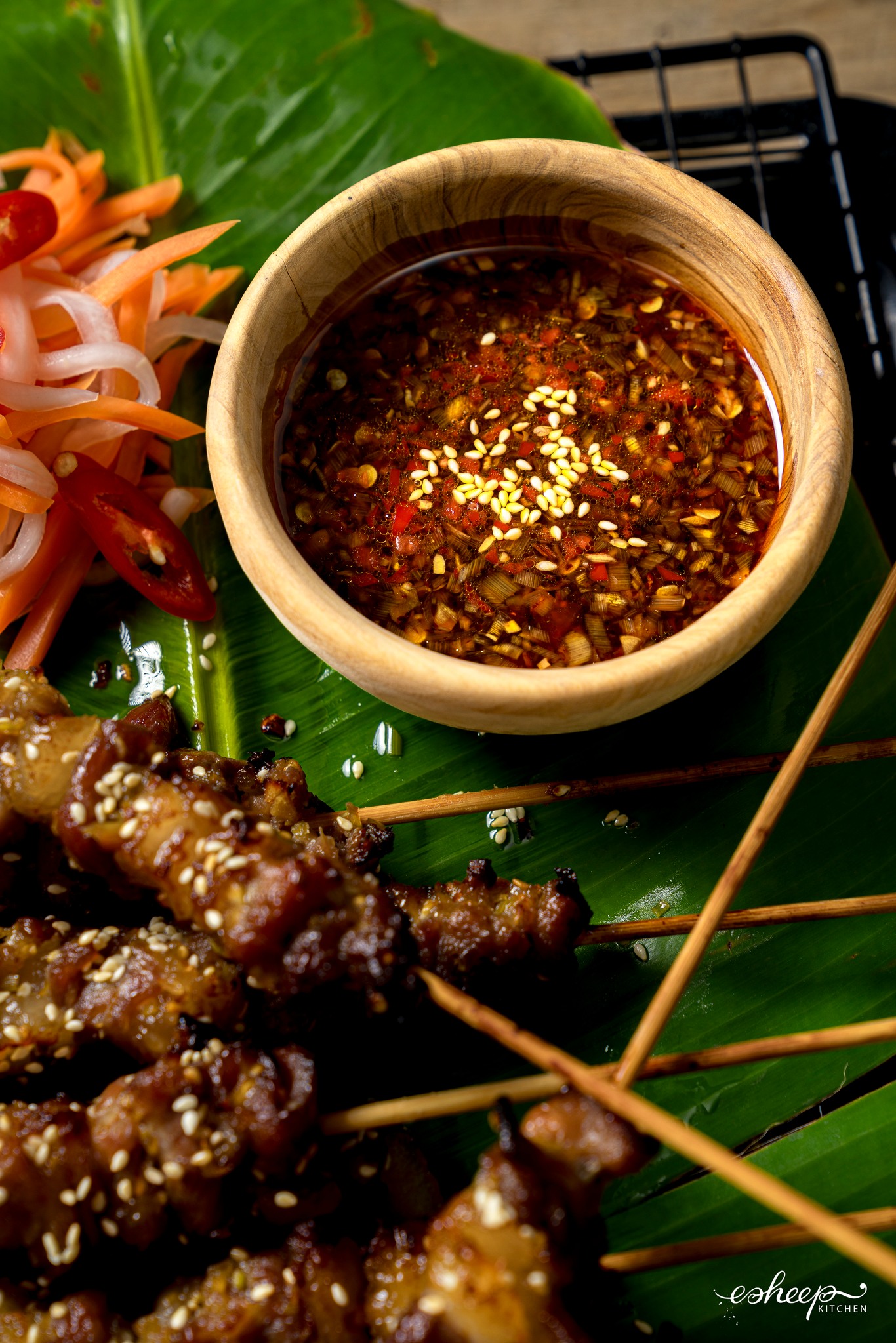 Món xốt chấm này ban đầu mình sáng tạo để rưới thịt xiên và chan bánh mì. Sau chấm kèm các món nướng chảo kiểu nầm, thịt bò nướng cuộn rau, chân/ cánh gà nướng, sườn nướng thấy ngon quá chừng, từ đấy là em nó thành chai xốt được ăn nhiều nhất ở nhà mình.